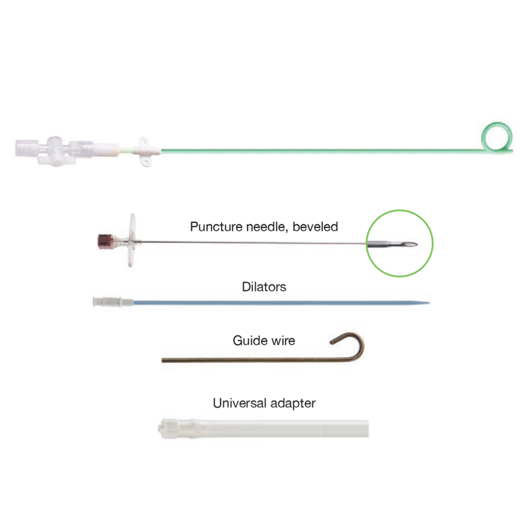 Exchange Set for suprapubic drainage of the urinary bladder as Puncture Set REF 3040, however instead of Split Cannula Cannula with special cut Easy to split Balloon catheter made of pure silicone Pigtail tip with eyes inside the ring Transparent With x-ray contrast line Set contents: Suprapubic balloon catheter, pigtail tip with 6 eyes, length […]