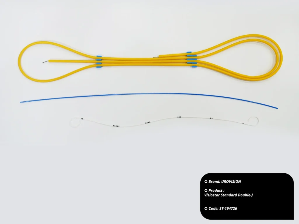 The image shows a UROVISION Visiostar Standard Double-J stent. This is a medical device designed to hold open a narrowed or blocked passageway within the urinary tract, such as a ureter or urethra. The stent is a thin, flexible tube that is inserted into the body through a small incision. It is often used to […]