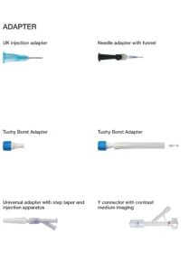 Adapter adalah sebuah perangkat penghubung yang digunakan untuk menghubungkan berbagai alat medis, seperti jarum suntik, kateter, atau tabung infus. Adapter ini memiliki berbagai jenis dan fungsi, disesuaikan dengan kebutuhan prosedur medis yang berbeda-beda.