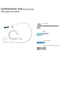 Supravision TUR Puncture Set adalah sebuah perangkat medis yang digunakan dalam prosedur bedah transurethral reseksi (TUR). Perangkat ini dirancang untuk membantu dalam pemasangan kateter khusus yang memiliki ujung berbentuk pigtail (ekor babi) dan corong.