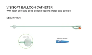 VISISOFT BALLOON CATHETER merupakan kateter balon yang memiliki inti lateks dan dilapisi silikon padat di bagian dalam dan luarnya. Desain ini menggabungkan kekuatan lateks dengan biokompatibilitas dan kelembutan silikon. Kateter ini dilengkapi dengan ujung Nelaton, yang lurus dengan lubang di sampingnya, serta catheter stoppers (penutup kateter) untuk menutup saluran kateter saat tidak digunakan. Keberadaan balon memungkinkan kateter untuk difiksasi di dalam kandung kemih setelah dipasang. Kombinasi material ini bertujuan untuk memberikan kenyamanan bagi pasien sekaligus meminimalkan risiko iritasi dan reaksi alergi.